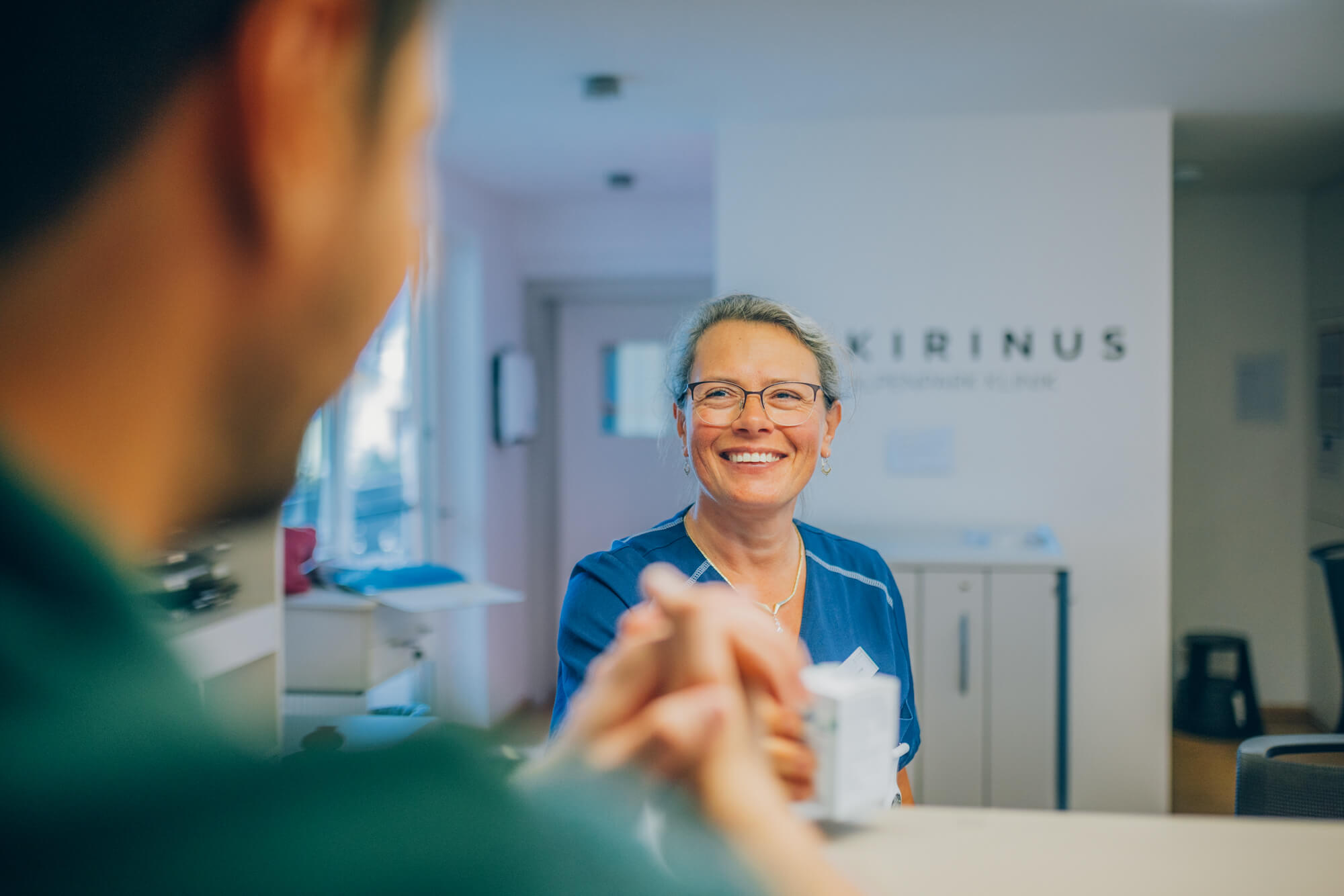 Christa Kastner ist der Grund, warum sich die Gäste der KIRINUS Alpenpark Klinik schon bei ihrer Ankunft willkommen und erwartet fühlen. In der Regel haben sie vorab eingehend mit der Leiterin des Patientenmanagements telefoniert. Denn Christa Kastner prüft die Verfügbarkeit von Klinikplätzen auf Anfrage seitens der Patienten oder der Sozialdienste.